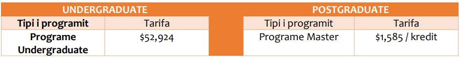 Tarifat e studimit për studentët ndërkombëtarë (2025-2026)